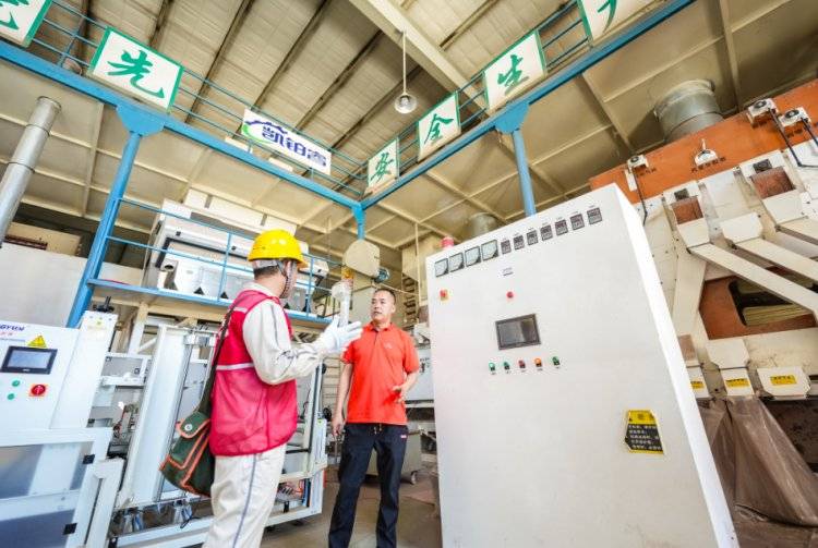 “晒干后的稻谷需迅速通过风车清理,供电服务队帮我们处理了老化线路,今年收成有保障了!”种粮户钟世良表示,如今从种植到收割全程机械化,加工环节也实现了全程电气化,既省力又增效。